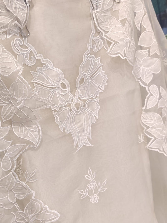 ATHARVA Hand Cutwork Salwar Kameez/Chanderi Cut-Work Shirt & Dupatta/Santoon Bottom/Custom Stitch Unstitch/Plazo/Pant/CUT8027P