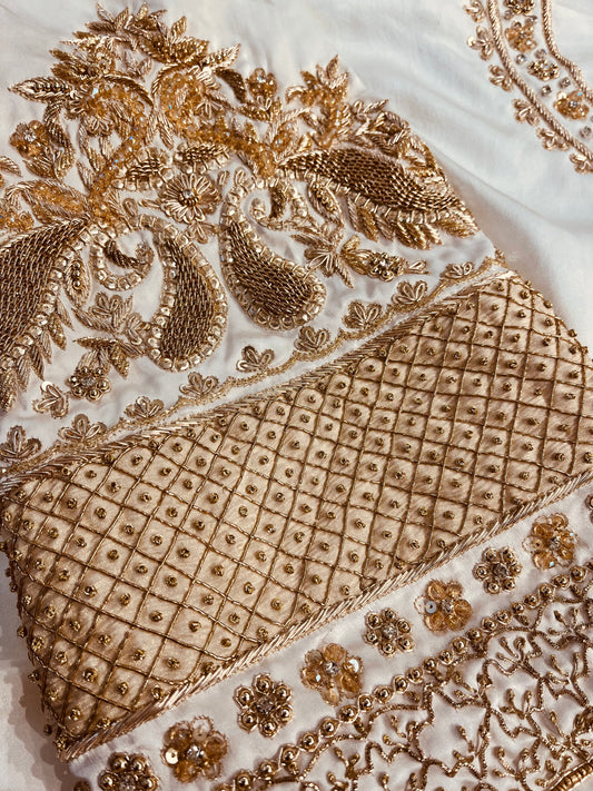 Indulge in sheer luxury with our silk organza collection, perfect for weddings and trousseaus. Each piece features beautiful fabric adorned with intricate designer embroidery, ensuring elegance and sophistication for your special day.