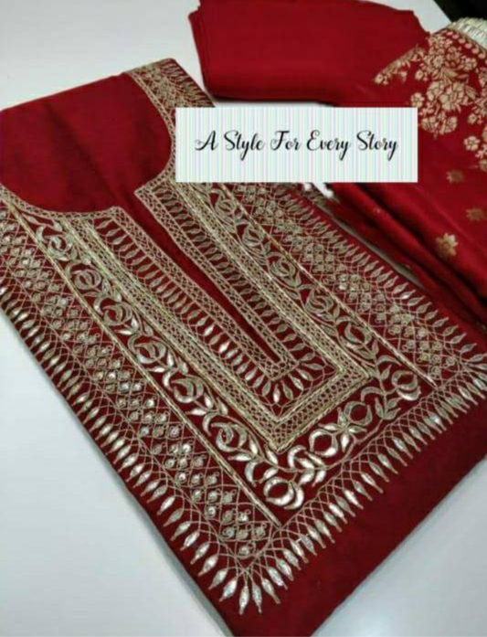 ATHARVA Applique Embroidery Salwar Kameeiz/Velvet Cut-Work Shirt & Dupatta/Velvet Bottom/Custom Stitch Unstitch/Plazo/Pant/VC8133