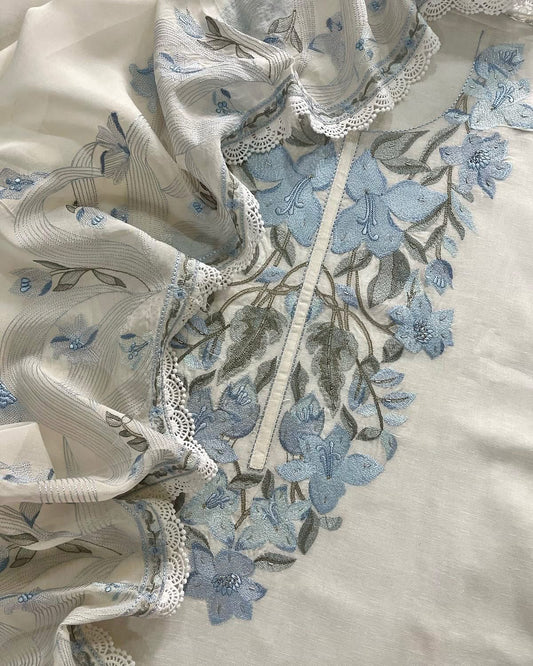 Atharva Heritage PURE CHANDERI SILK PARSI GARA SUIT MCH0086 ENGLISH BLUE