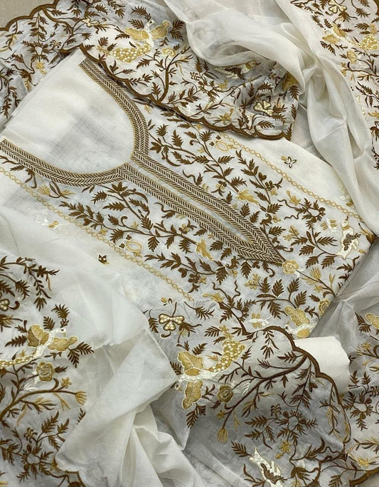 ATHARVA HERITAGE PURE MUL CHANDERI PARSI GARA UNSTITCHED SUIT CH5423