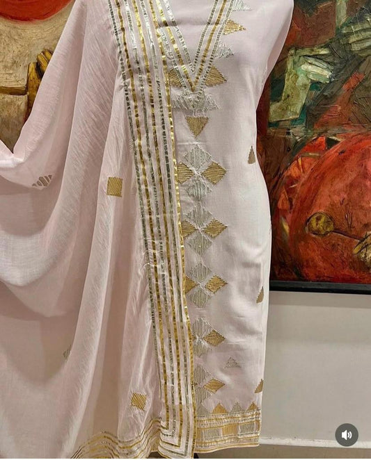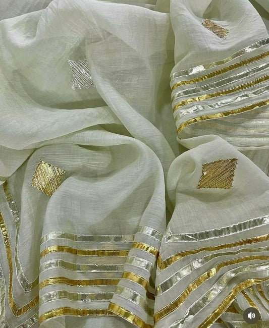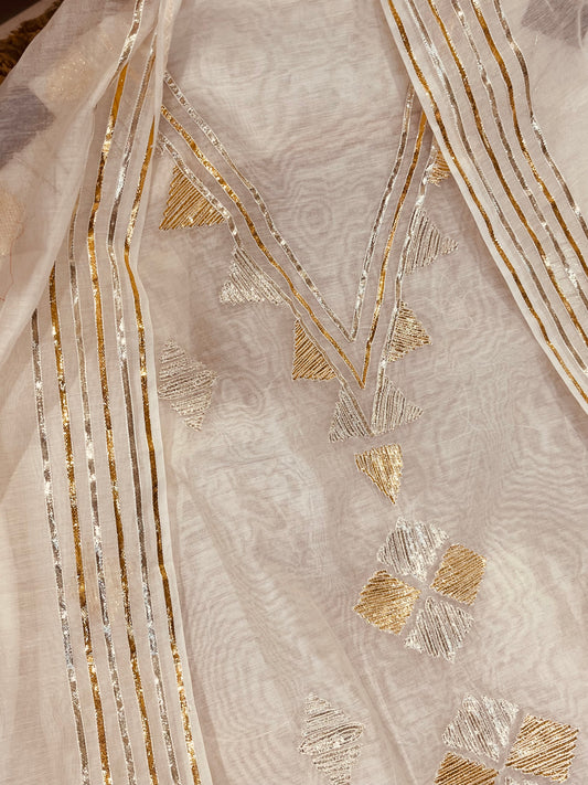 Atharva Hand Gota Embroidered Pure Mul Chanderi Hand woven edits MC7001I Ivory