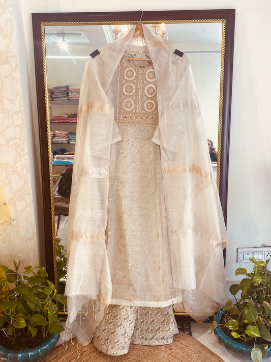 Atharva Heritage ✨ Unbelievable Luxury | Pure Chanderi Silk Kurta with Parsi Embroidery & Silk Organza Dupatta PCHPG0057
