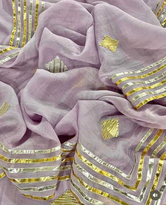 Atharva Hand Gota Embroidered Pure Mul Chanderi Hand woven edits MC7001L Lavender