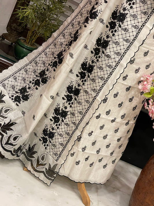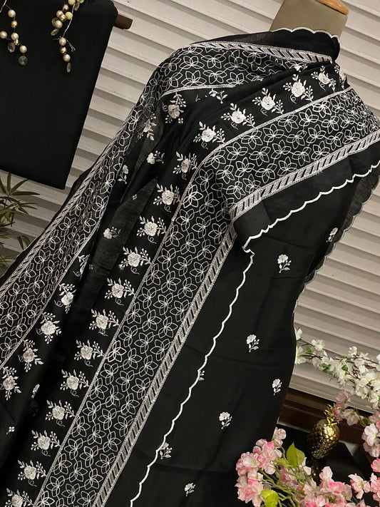 PURE CHANDER SILK PARSI GARA SUIT with Cutwork on width CH5417 Black and white