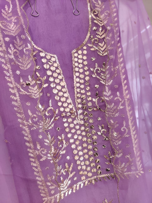 ATHARVA HERITAGE SHEER LUXURY PURE SILK ORGANZA HAND APPLIQUE UNSTITCHED SUIT SHEER001L LAVENDER