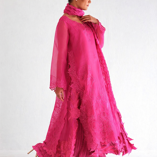 ATHARVA HERITAGE Sheer Luxury Trousseau Collection PURE SILK ORGANZA FRENCH THREAD EMBROIDERED unstitched Suit SLP0052 Pink