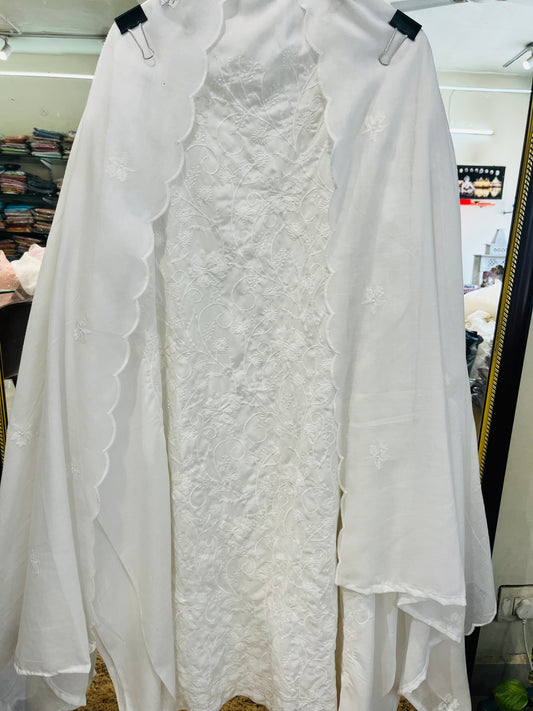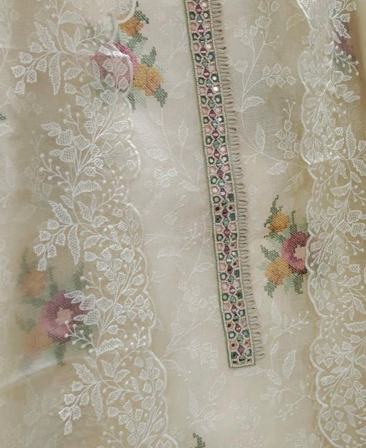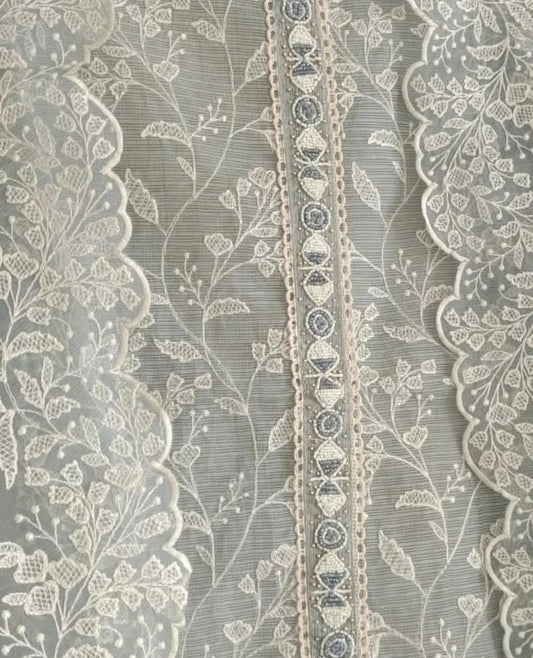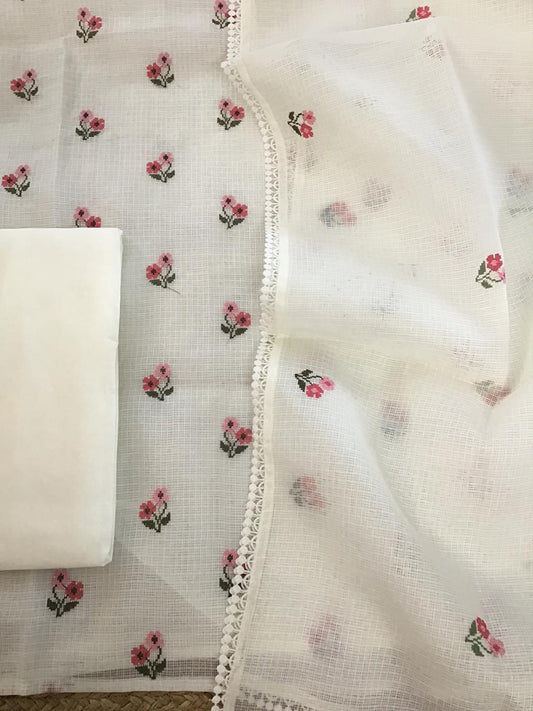 Atharva Embroidered Pure Cotton Kota Doria Salwar Kameez/Embroidery Kota Dupatta Ivory /Kota Embroidery Shirt Ivory/Cotton Bottom- KK0021