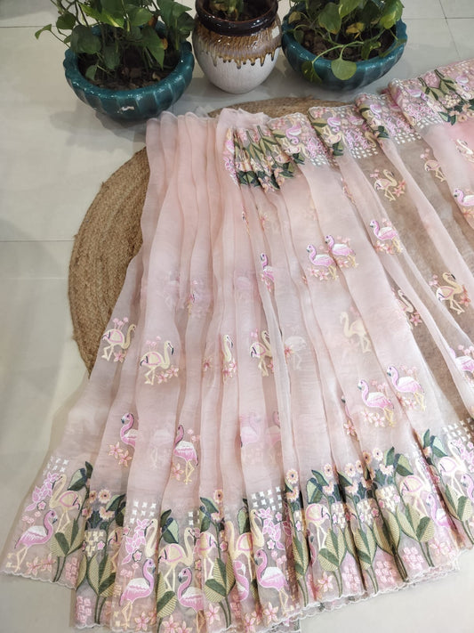 Atharva Heritage "Flamingo Fantasy: Pure Silk Organza Luxury Saree"