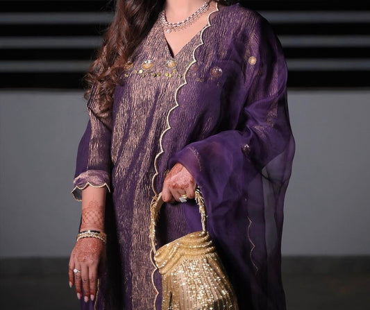 Atharva Heritage Lavender Crushed Tissue Kurta with Parsi Gara Embroidery & Silk Organza Dupatta CTSP015