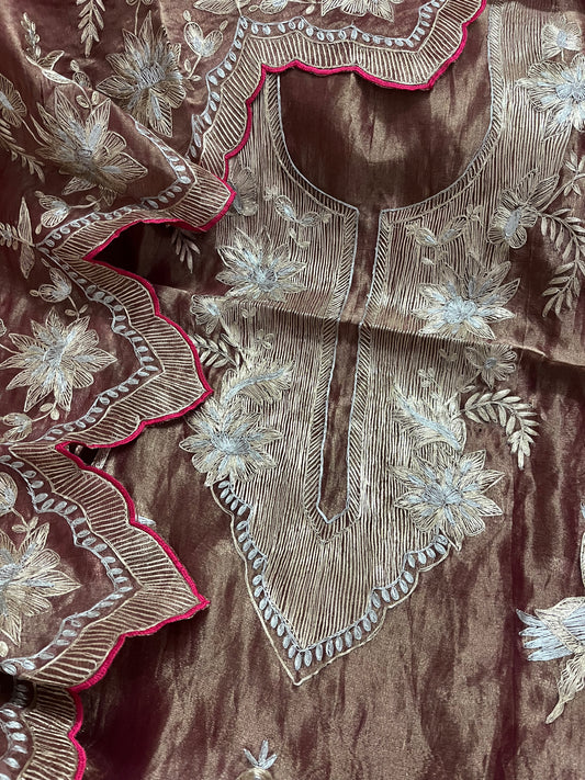 Atharva Heritage Regal Kashmiri Embroidered Pure Tissue Silk Co-Ord Set Unstitched/Stitched