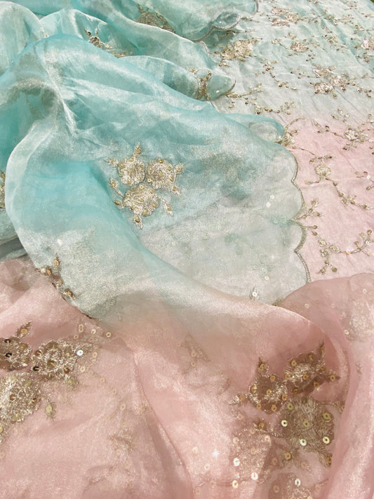 Husn ICE BLUE DAIMOND TISSUE INTRICATELY HAND WOVEN /MAHARANI LUXURY TISSUE SILK SUIT MTC009(Blue)