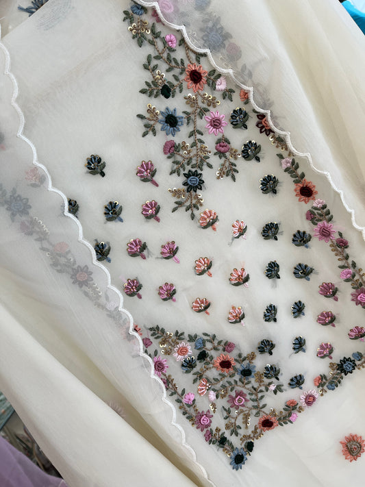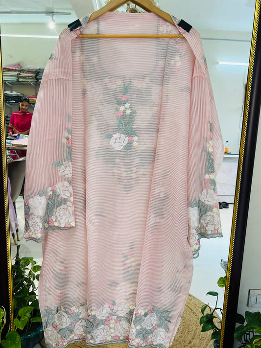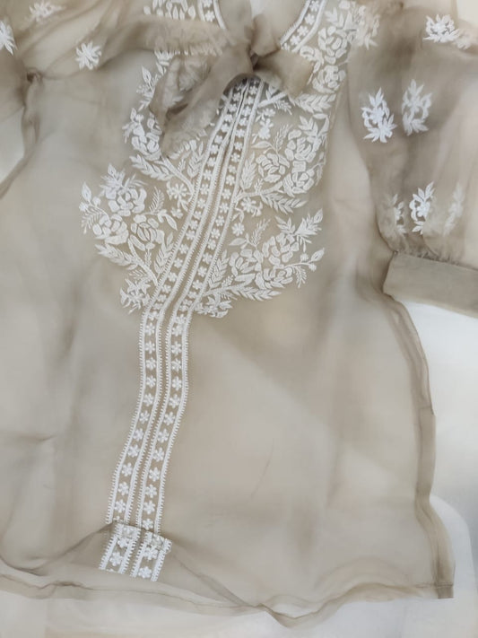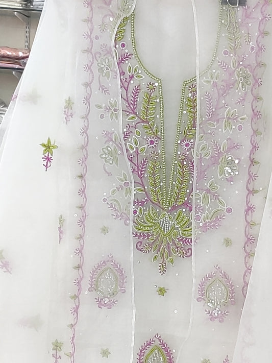 Atharva Heritage Sheer Luxury Silk Organza Lucknowi Semi Stitched Top SLT001I