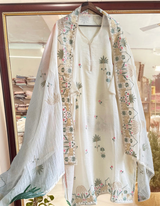 Atharva Heritage Pure Mul Chanderi Kurta/Pure Mul Chanderi Dupatta / Embroidered SUIT CHO00167
