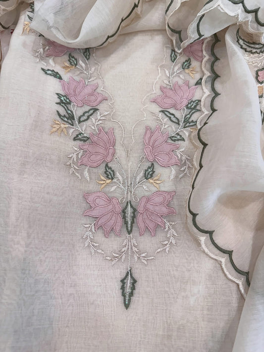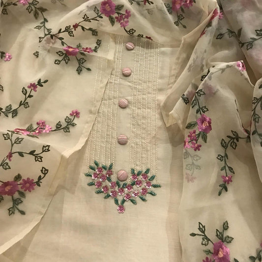 ATHARVA HERITAGE PURE CHANDERI Silk 70 Grams KURTA WITH PURE SILK ORGANZA DUPATTA PARSI EMBROIDERED UNSTITCHED SUIT CH19089