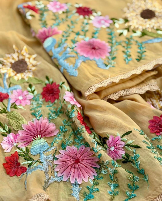 ATHARVA Hand Embroidery Salwar Kameez/Chanderi Appliqué -Work Shirt & Dupatta/Santoon Bottom/Custom Stitch Unstitch/Plazo/Pant/CUT8030