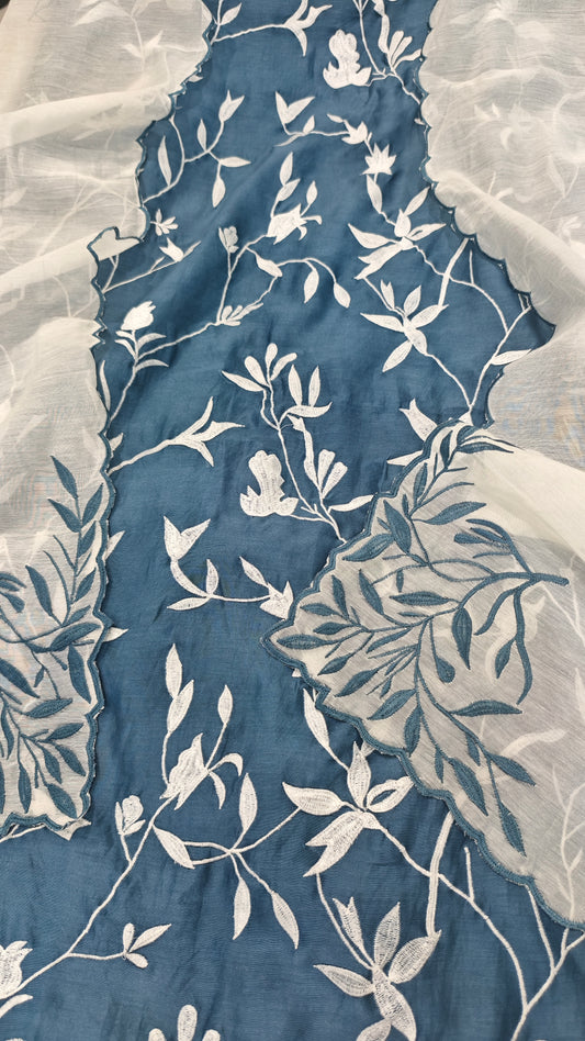 ATHARVA HERITAGE Hand CUTWORK Embroidery Salwar Kameez/Pure Mul Chanderi Cut-Work Shirt & Dupatta/Santoon Bottom/Custom Stitch Unstitch/Plazo/Pant/CUT80362 Royal Blue