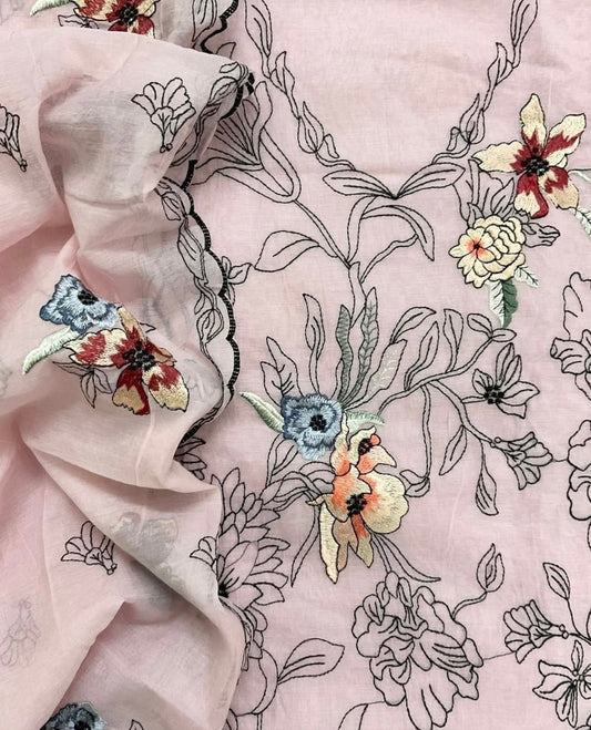 Atharva Heritage PURE STRIPED Mul CHANDER French THREAD EMBROIDERED SUIT CH5455 PINK