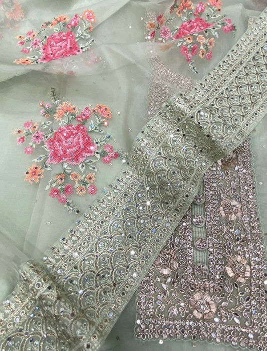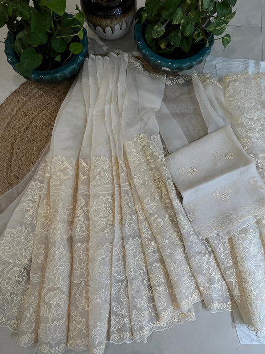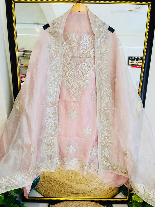 Atharva Heritage SHEER LUXURY Pure Silk Organza French Thread Embroidery SUIT SHEER007E