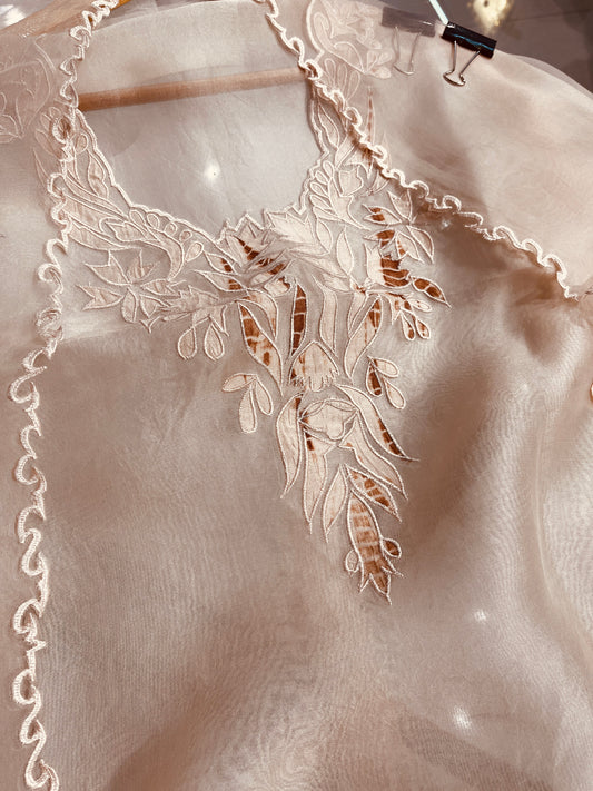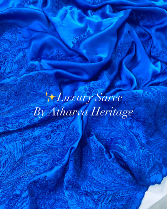Atharva Heritage “Sheer luxury pure silk organza saree with intricate hand applique work, designed by master craftsmen — perfect for weddings, festive occasions, and luxury trousseaus.” S001B