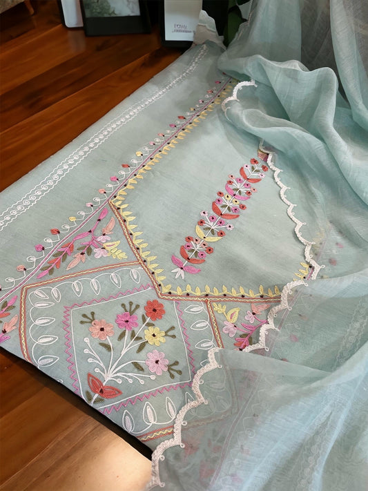Atharva Heritage Pure Mul Chanderi Kurta/Pure Chiffon Dupatta / French Thread Embroidered SUIT CHO00160A Denim Color