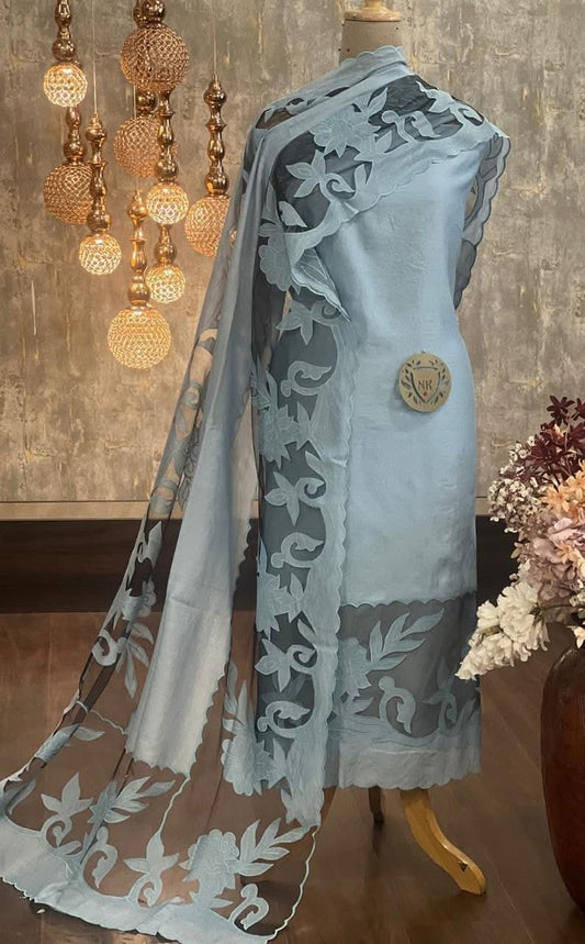 Atharva HeritageSHEER LUXURY PURE SILK ORGANZA APPLIQUE SUIT SHEER0077