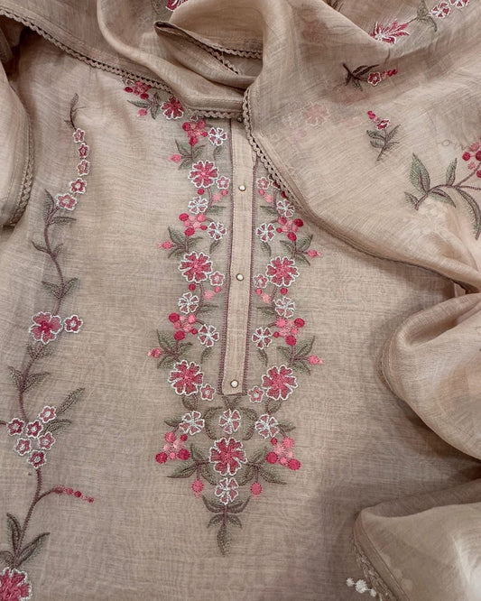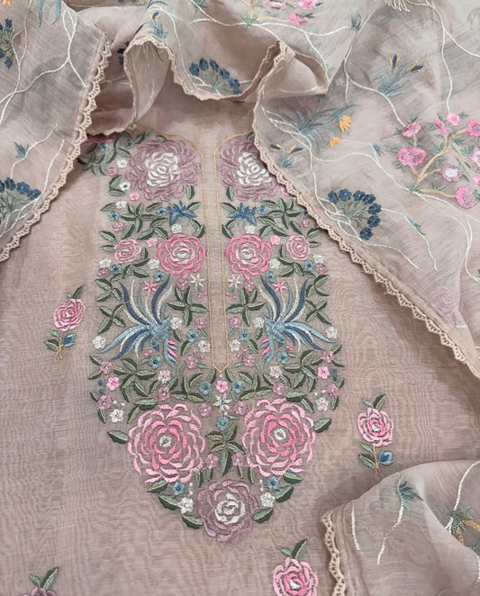 ATHARVA HERITAGE PURE MUL CHANDERI SILK PARSI GARA SUIT MCH0013P Dusty Peach
