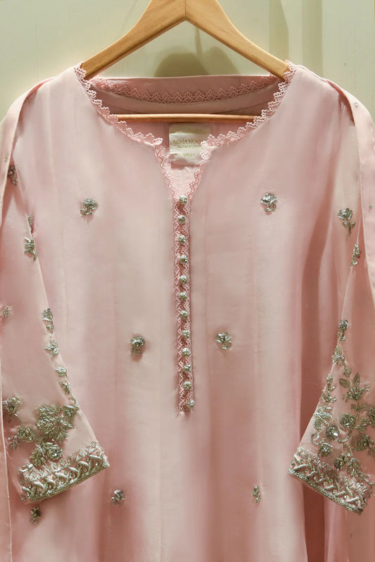 ATHARVA HERITAGE SHEER LUXURY HAND MIRROR EMB SUIT SHEER0027 Pink