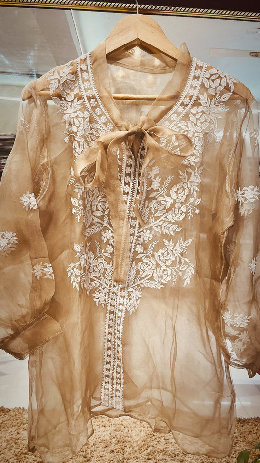 Atharva Heritage Sheer Luxury Silk Organza Lucknowi Semi Stitched Top SLT001M