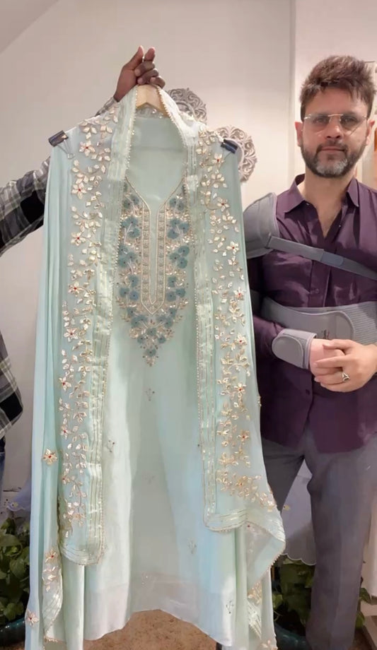 ATHARVA Hand Embroidered Salwar Kameez w/ Mint Chanderi Shirt/Gota Pati Chiffon Dupatta/Custom Stitch Unstitch/Custom Anarkali/CH18017 Mint