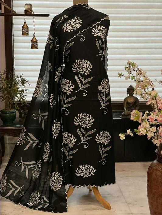 ATHARVA HERITAGE Hand CUTWORK Embroidery Salwar Kameez/Pure Mul Chanderi Cut-Work Shirt & Dupatta/Santoon Bottom/Custom Stitch Unstitch/Plazo/Pant/CUT80356