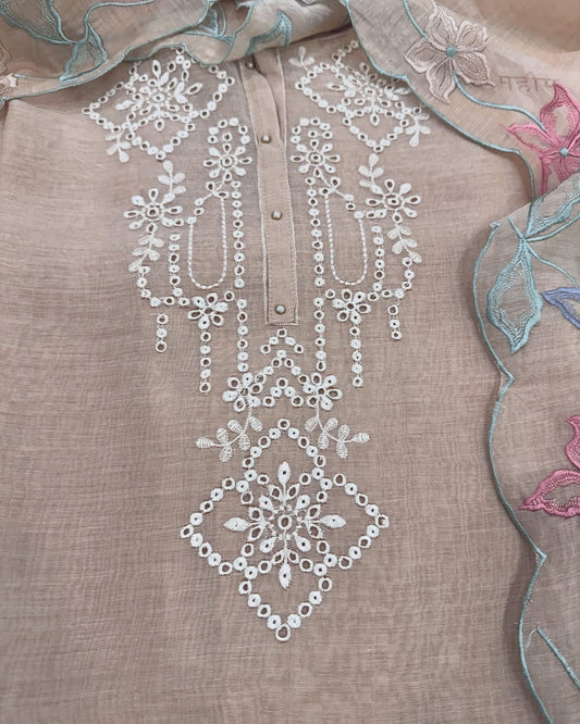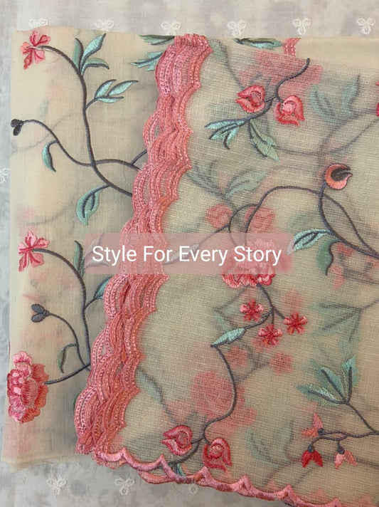 ATHARVA HERITAGE PURE CHANDERI SILK AND ORGANZA KURTA DUPATTA / PARSI GARA EMBROIDERY CHO0014