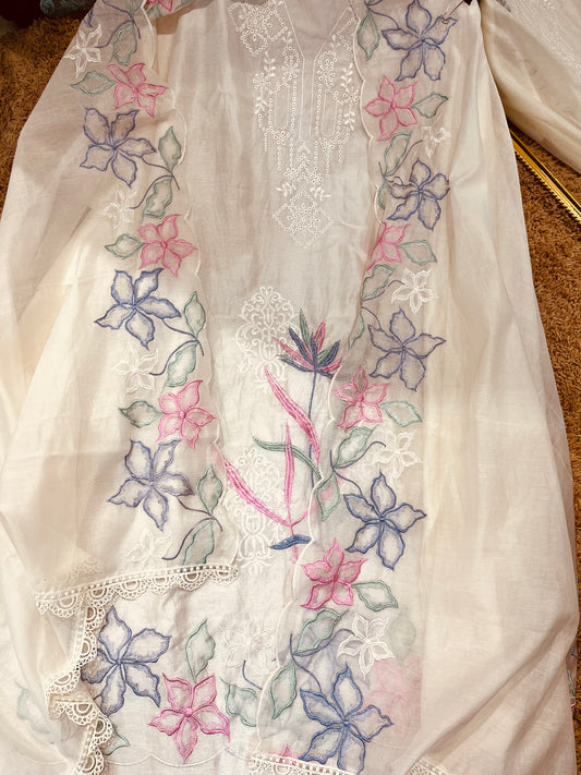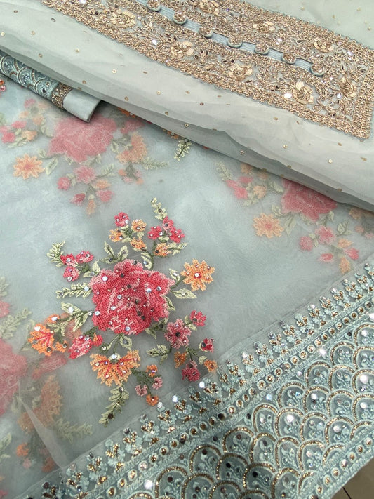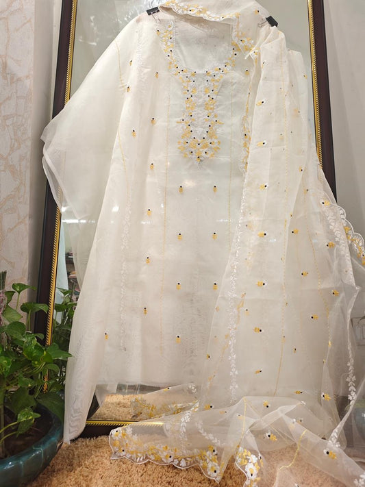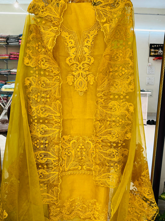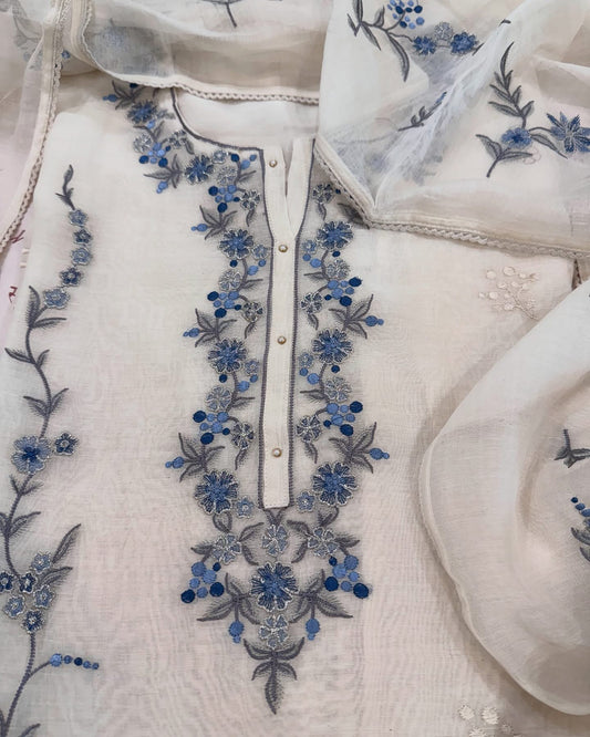 ATHARVA HERITAGE Sheer Luxury Unstitched Pure Silk Organza Pakistani Hand Appliqué Suit PL002L