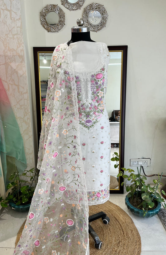 ATHARVA HERITAGE SHEER LUXURY PURE SILK ORGANZA KASHMIRI AARI EMBROIDERY SUIT SHEER0021W