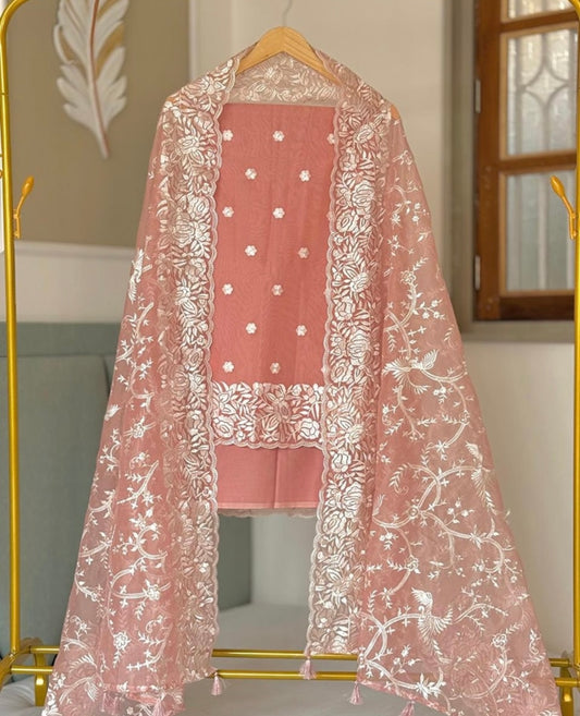 ATHARVA HERITAGE SHEER LUXURY PURE SILK ORGANZA KASHMIRI AARI EMBROIDERY SUIT SHEER0021