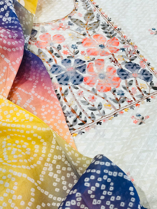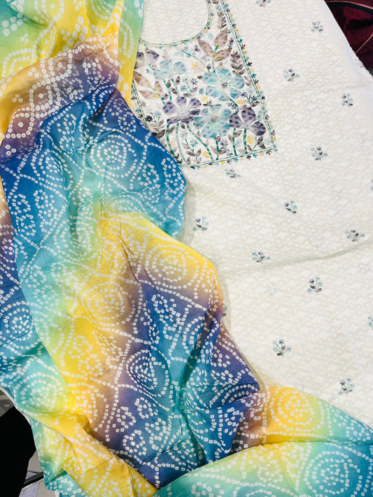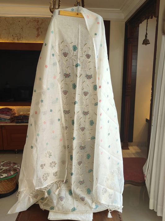 ATHARVA HERITAGE PURE MUL CHANDERI KURTA AND PURE SILK ORGANZA DUPATTA FRENCH THREAD EMBROIDERY SUIT MCH0074