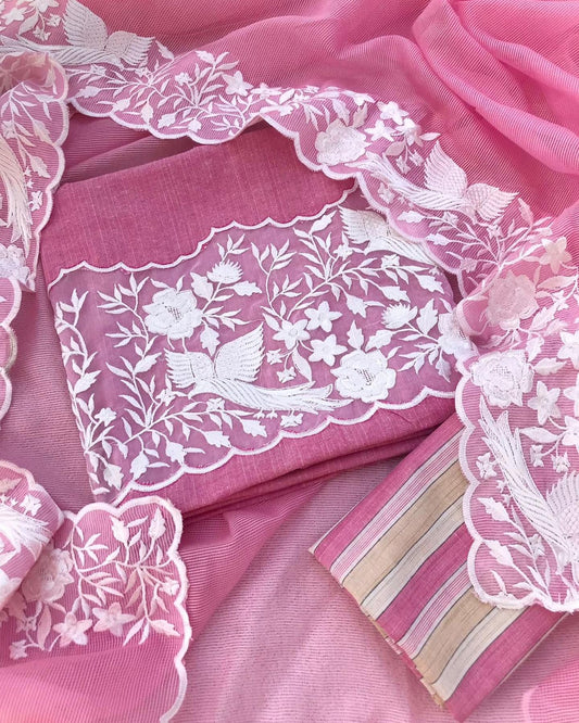 ATHARVA HERITAGE PURE CHANDERI CROSS STITCH SUIT EITH HAND CUTWORK SUIT MCH0073