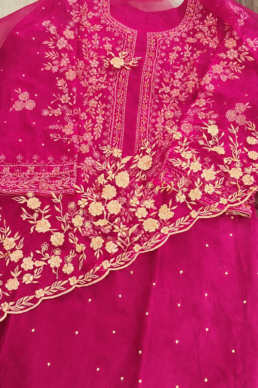 Atharva Heritage Silk Organza Hand-Appliqué Pakistani Co-Ord Set – Three-Piece Designer Ensemble AH181331712