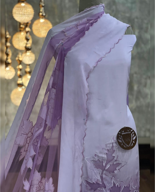 ATHARVA HERITAGE SHEER LUXURY PURE SILK ORGANZA HAND APPLIQUE UNSTITCHED SUIT SHEER001L LAVENDER