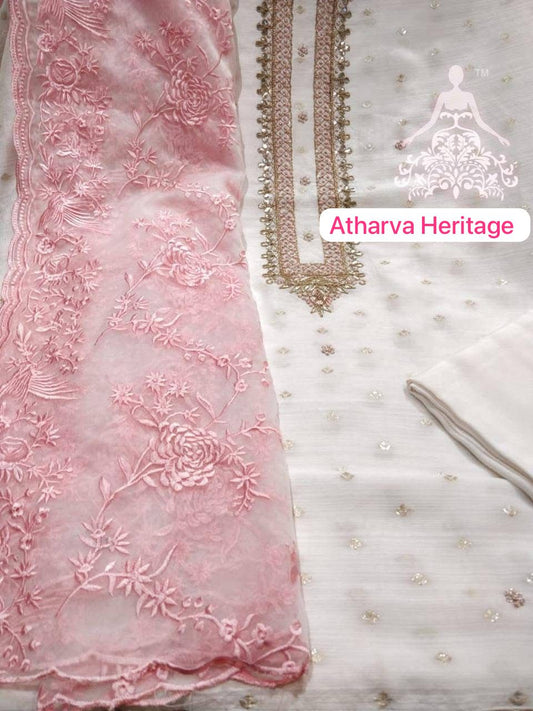 ATHARVA HERITAGE SHEER LUXURY Pure Silk Organza French Thread Embroidery SUIT SHEER007B