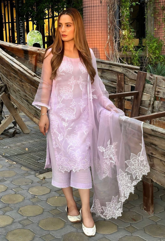 ATHARVA HERITAGE Sheer Luxury PURE SILK ORGANZA HAND APPLIQUE Ready to Wear Pakistani Suit SLP0023