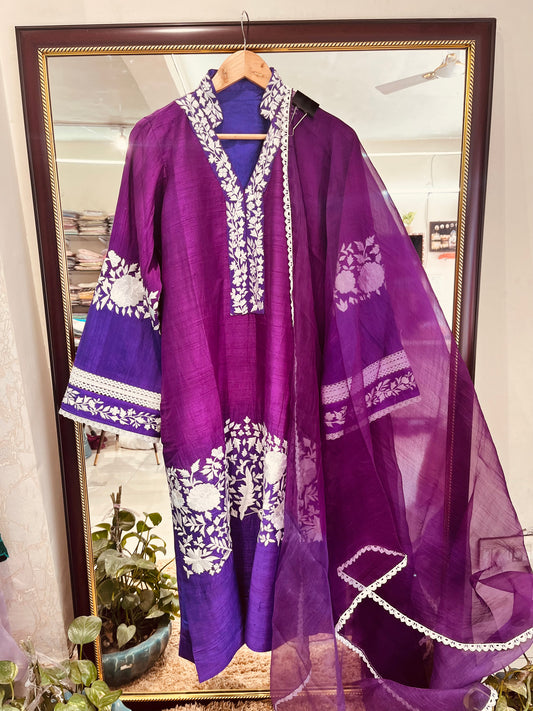 ATHARVA HERITAGE Hand Applique /Cutwork Embroidery Salwar Kameez/pure Mul Chanderi Shirt & Dupatta/Santoon Bottom/Custom Stitch Unstitch/Plazo/Pant/ CUT8075