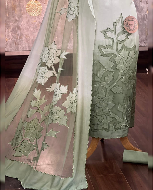 ATHARVA HERITAGE SHEER LUXURY PURE SILK ORGANZA HAND APPLIQUE UNSTITCHED SUIT SHEER001Y