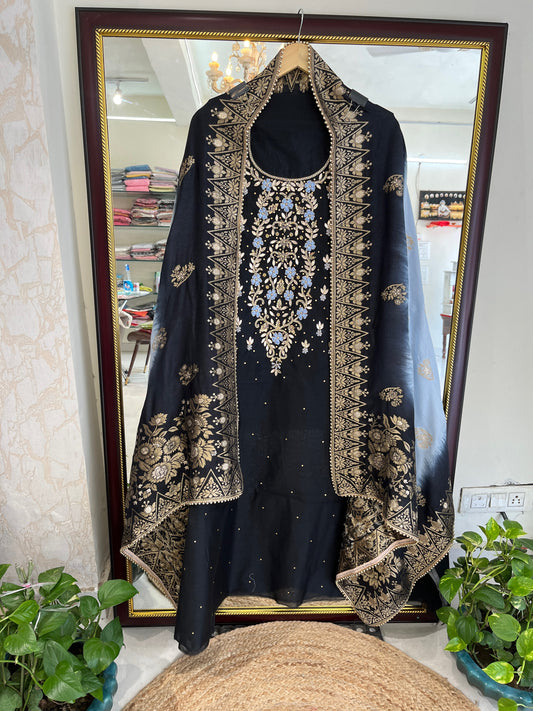 ATHARVA HERITAGE PURE CHANDERI SILK PARSI EMBROIDERED PAKISTANI SUIT CH1907