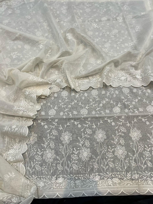 ATHARVA HERITAGE PURE MUL CHANDERI DYEABLE SHADOW EMBROIDERY UNSTITCHED SUIT CH5424A