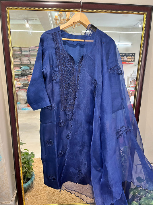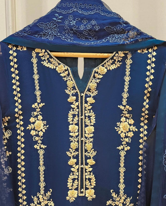 Sheer Luxury Pure Silk Organza Ready to Wear Pakistani Suit SLP0012 Royal Blue