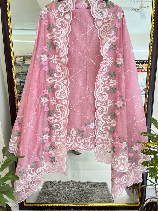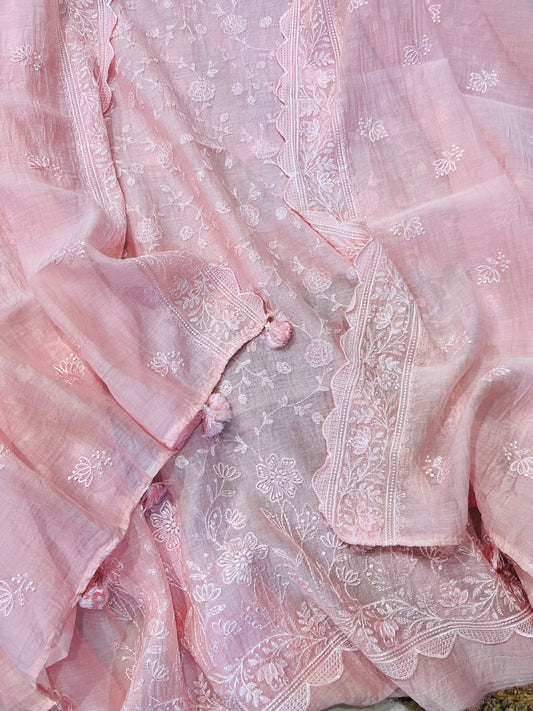 ATHARVA HERITAGE PURE MUL CHANDERI DYEABLE SHADOW EMBROIDERY UNSTITCHED SUIT CH5424P Pink