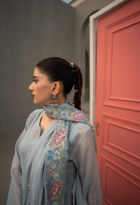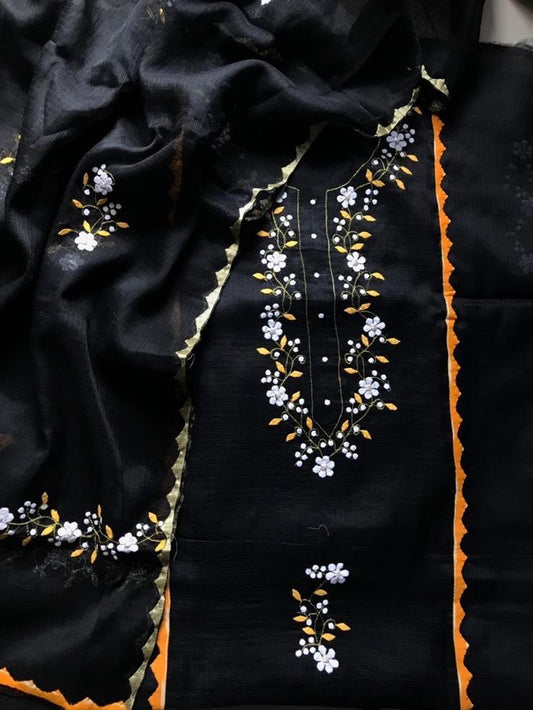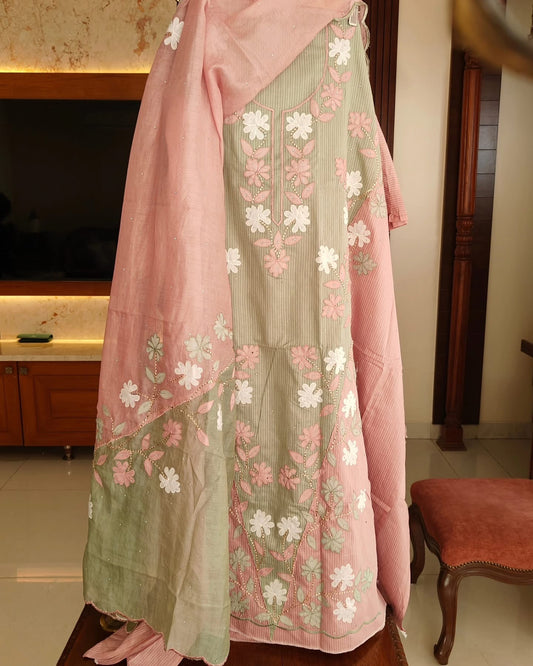 ATHARVA HERITAGE Hand Applique /Cutwork DESIGNER Embroidery Salwar Kameez/pure Chanderi MUL Shirt & Dupatta/Santoon Bottom/Custom Stitch Unstitch/Plazo/Pant/ CUT8069