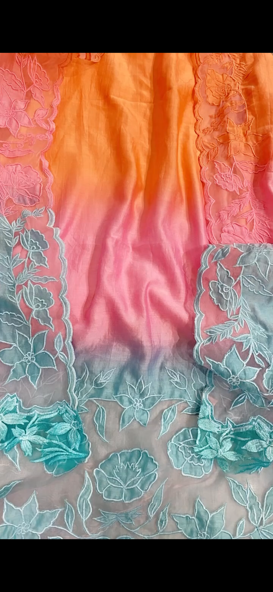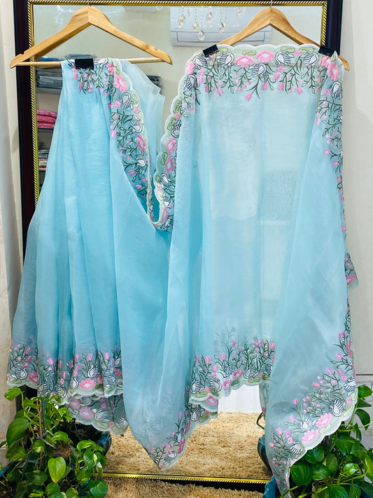 Atharva Heritage SHEER LUXURY PURE SILK ORGANZA APPLIQUE Unstitched SUIT SHEER001(Blue)