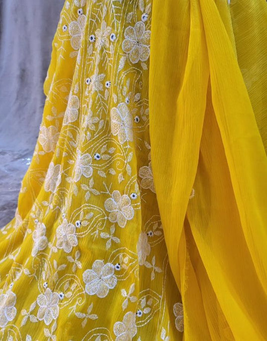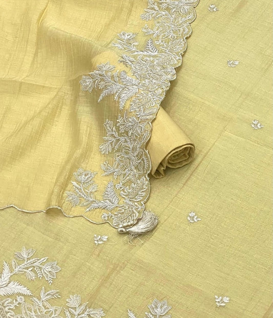 PURE MUL CHANDERI kurta AND Dupatta Thread Embroidered UNSTITCHED SUIT CH54240Y Yellow